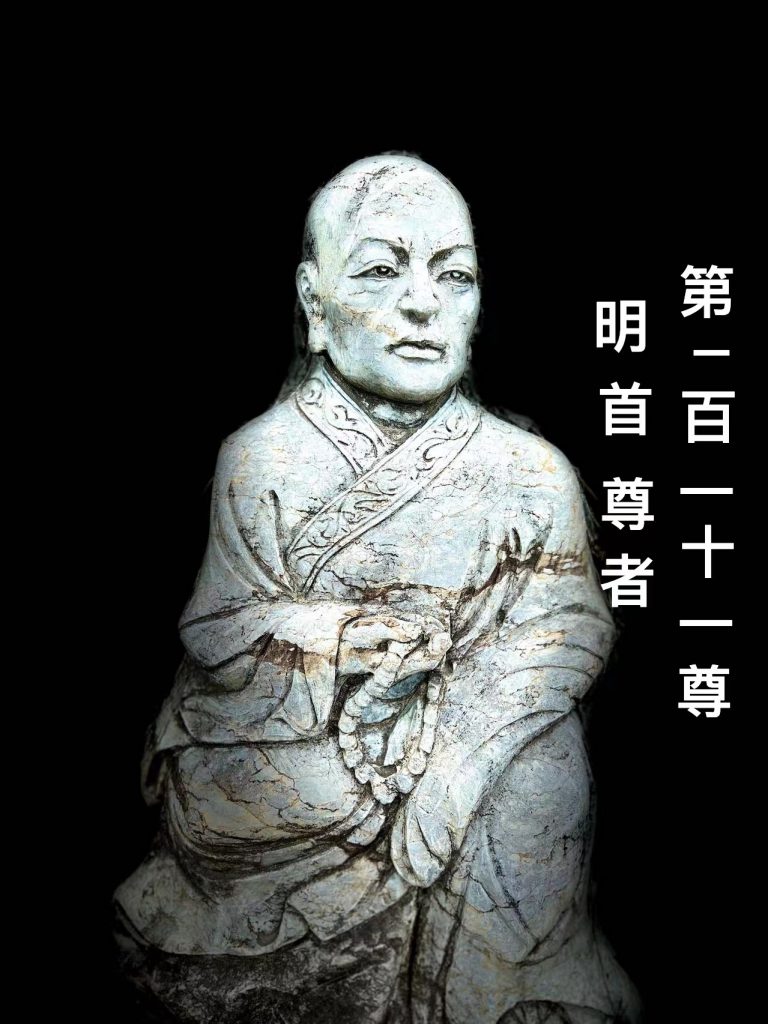 明首尊者,佛陀弟子。为居于西南地方的菩萨。《<佛说善萨本业经*卷-载:“西南无极,有宝林刹,佛名上精进,菩 萨字明首。尊者曾随佛陀学习佛法诚心砥励。他思维神异,智与佛同。通于大乘学说,熟谙一切佛法戒律。渊博的佛学理论如虚空一般广大。随缘向大众宣讲佛教教义,并可根据不同的风俗习惯随机应变,循循顺导,以济度幽显,度众生于彼岸。尊者辩才深奥,变化莫测,可纾解民间怨恨,降伏世间魔障,折伏外道并使皈依佛法。勇F徒步周游十方各地,邪教外道也无法阻碍。据<<佛说濡首联无上清净分卫经>>卷上载,尊者曾在舍卫国祗树给孤园听佛祖讲法,并与佛祖的弟子大比丘五百人、菩萨千人共同研讨佛学的真谛.
